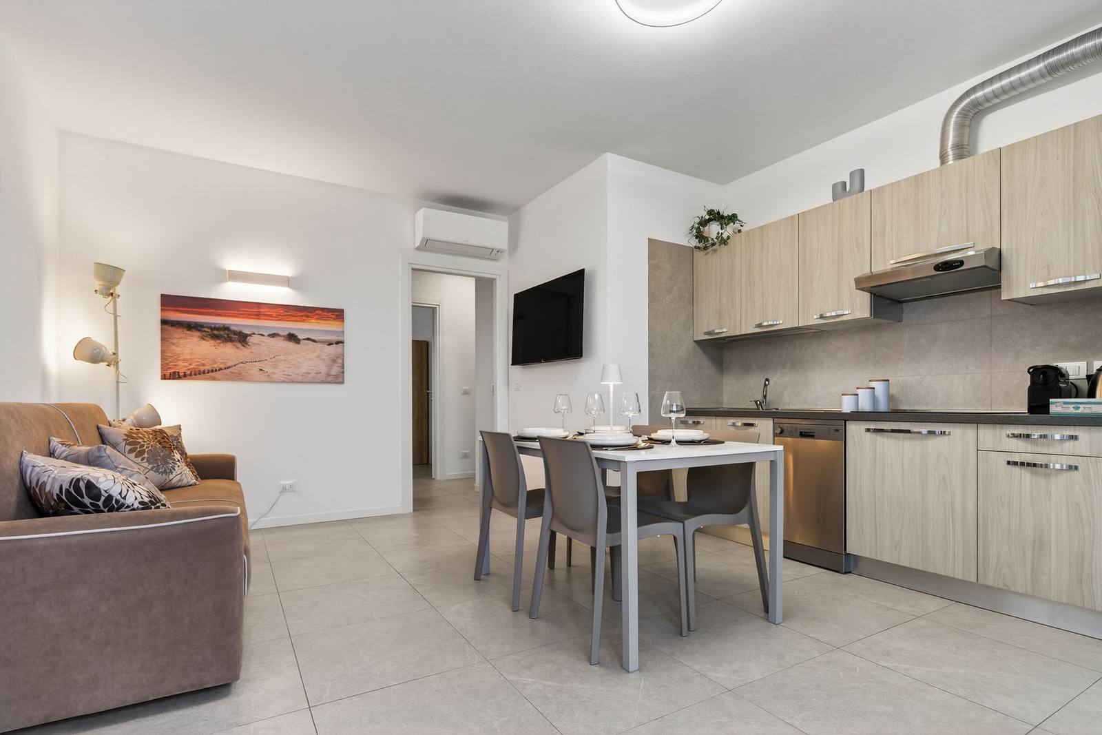 - Full apartment amenities (fully equipped kitchen with dishwasher, washing machine, microwave, kettle, coffee machine)